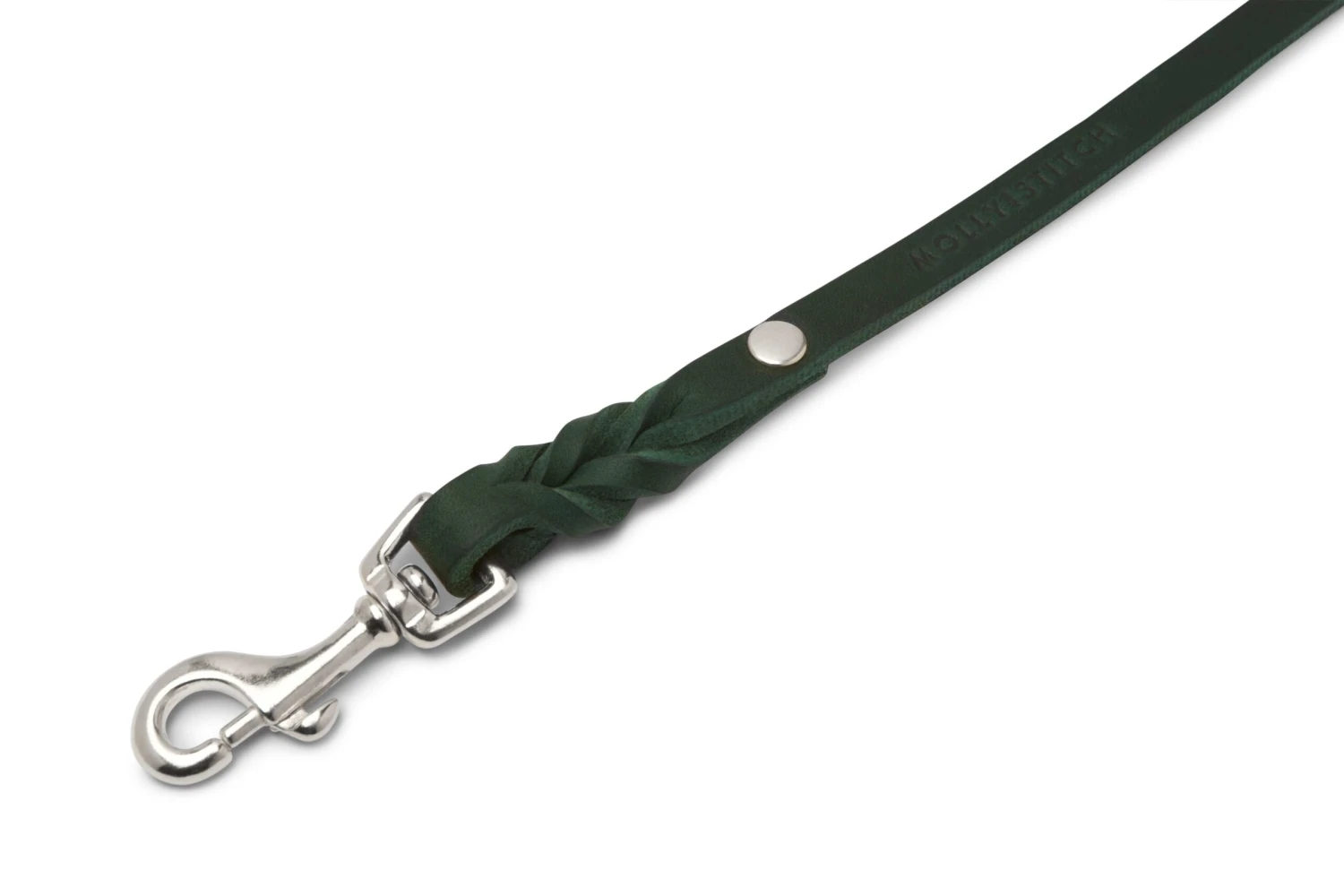 The Forest Green City Leash is a timeless favorite. Measuring 4.5 feet in length, this leash is handmade in Austria with naturally tanned German leather and solid brass or steel hardware. Grasp the buttery smooth leather handle and clip the braided end onto your dog’s collar. This polished design is perfectly sized and artfully crafted, no adjustments required.