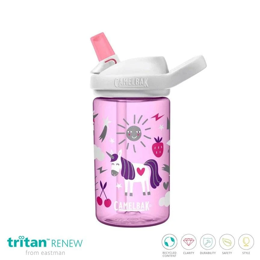 Keep them happy and hydrated. Eddy® Kids water bottle is made with Echo™, a 10% renewable plant-based material. Lightweight and durable, it’s spill-proof when open and leak-proof when closed. No tipping – just flip, bite, and sip. Easy to clean and BPA, BPS, and BPF free. Recommended for ages 3+.