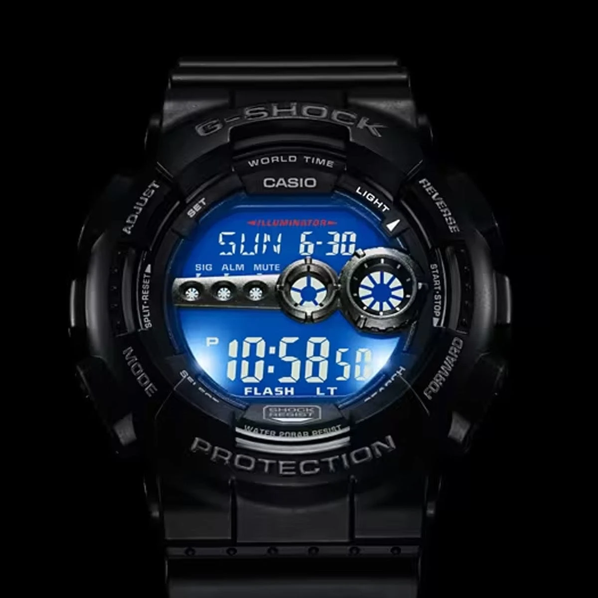 A model equipped with a high-brightness LED backlight from G-SHOCK, which continues to evolve in the pursuit of toughness. Use of a high-brightness LED system and a light guide plate makes the watch easy to read even in the dark. It also has practical functions such as world time, an alarm, and a stopwatch. The color is classic G-SHOCK black, and the brand-color red is used as an accent throughout.