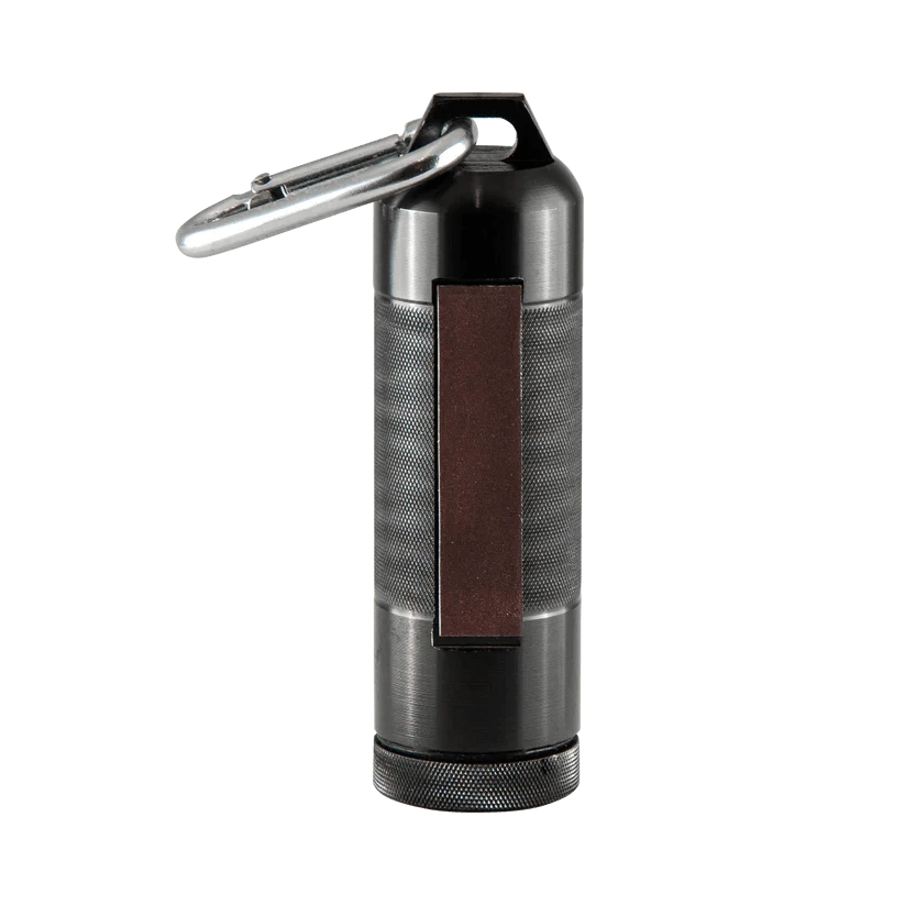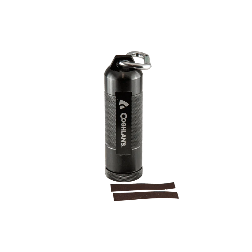 Coghlan’s Match Case is a dependable way to protect matches from the elements. This watertight aluminum case carries up to 30 of Coghlan’s Waterproof Matches and up to 12 of Coghlan’s 5cm Storm Matches. Gasketed with a rubber O-ring, this durable case will ensure your matches are dry and ready when you need them. Made of 6000 series aluminum, this rugged case has a knurled finish on the body and screw-off cap for ease of use with wet or cold hands. The scratch-resistant anodized aluminum exterior features an integrated strike pad. The product comes with 2 additional replacement strike pads inside. The case comes with an integrated carabiner allowing it to be attached to backpacks, daisy chain loops, belts, and more.