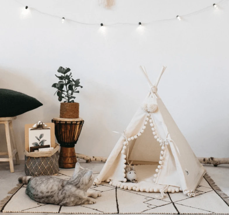 Made from high-quality canvas and sturdy pine wood, the Cozy Haven Pet Teepee is built to last. Its durable construction ensures that your pet will enjoy this stylish sanctuary for years to come.