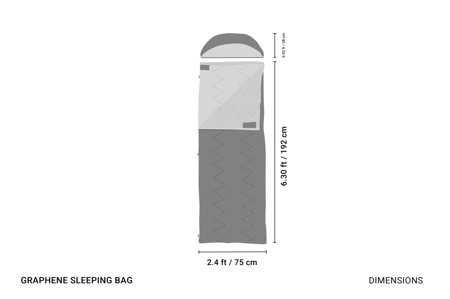 Experience unparalleled comfort and warmth with the Graphene Sleeping Bag for outdoor enthusiasts. Engineered with advanced graphene-infused insulation technology, this all-season sleeping bag provides exceptional heat retention, durability, breathability, comfort and lightweight portability.