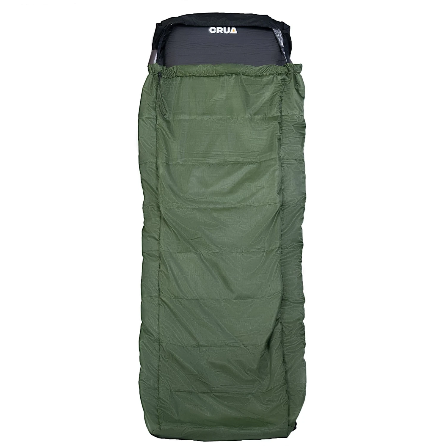CRUA’s Sleep System features a thick, self-inflating mattress for maximum comfort and insulation. The graphene-infused fibers of the zip-on quilt create an insulating and comfortable all-in-one sleep system even on harsh, rocky ground.