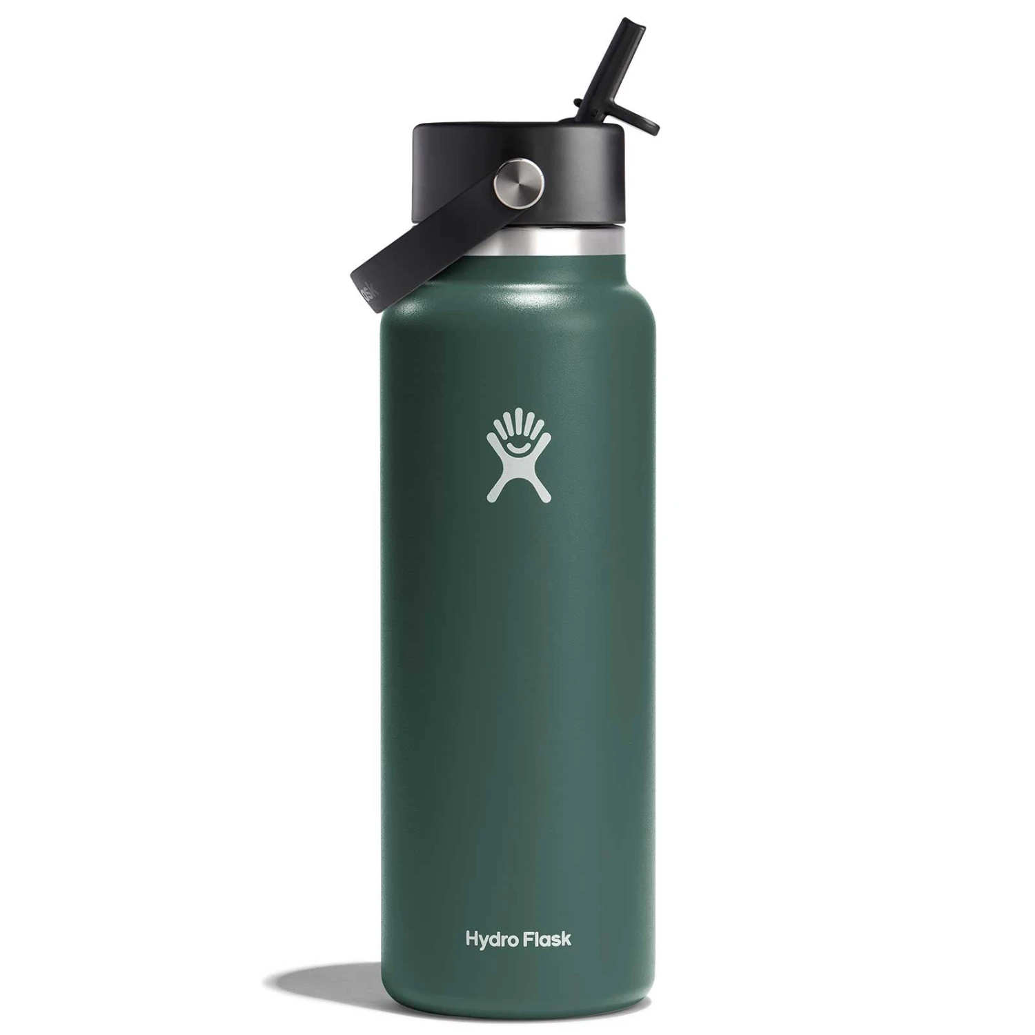 A 40 oz Wide Mouth water bottle with our leakproof Flex Straw Cap—easy to fill, easy to drink. Open it up, add your ice, and flip to sip. The insulated stainless steel keeps it cold for up to 24 hours.