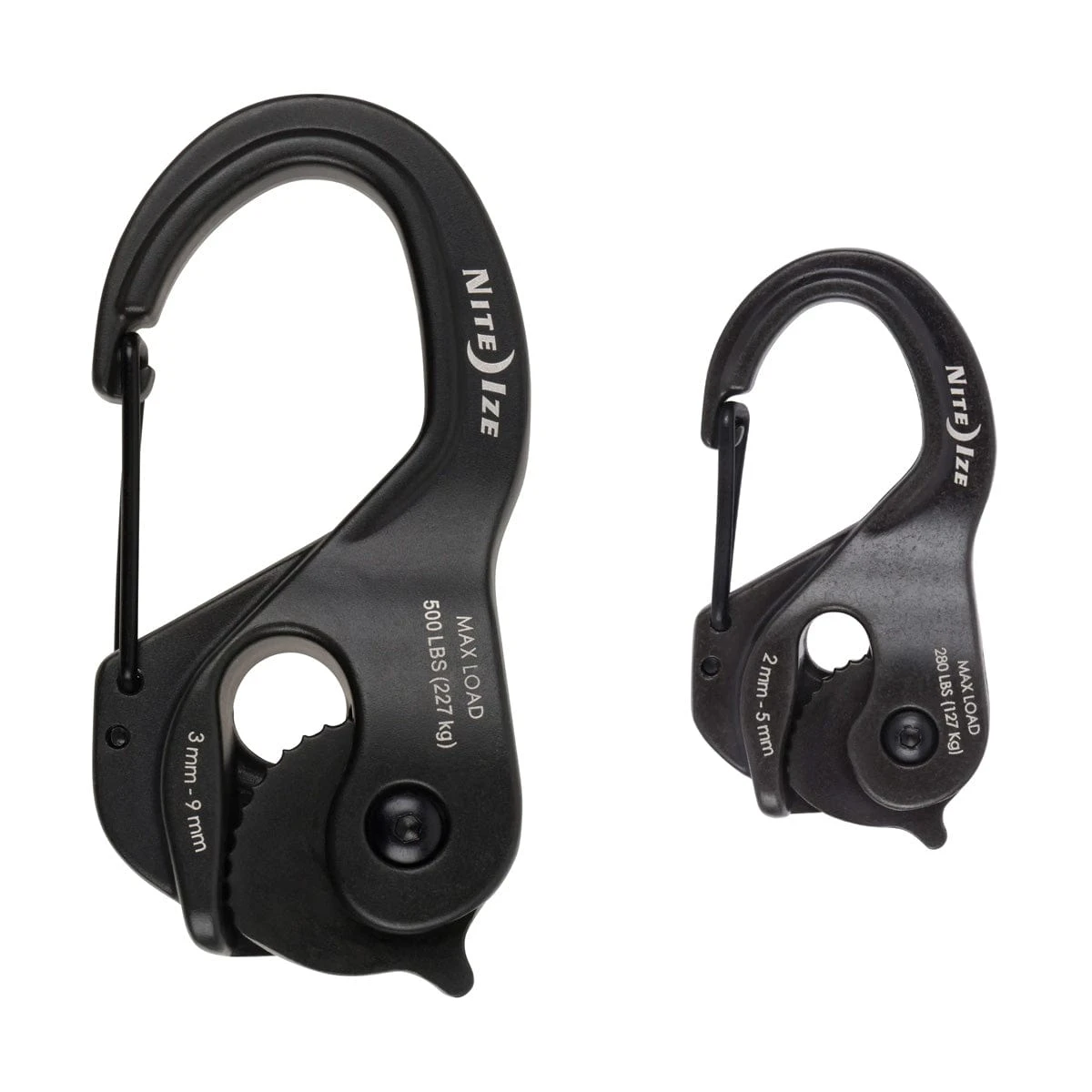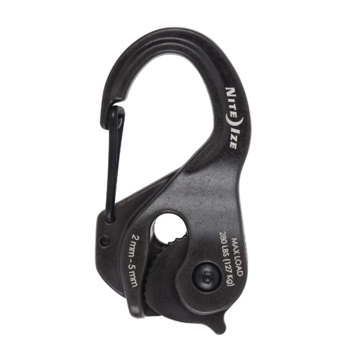 The CamJam XT Aluminum Cord/Rope Tightener features Nite Ize signature knot-free CamJam tightening and tensioning technology. Built from durable cast aluminum, this rugged combination of a carabiner and cam mechanism can tighten, tension, connect, and secure serious loads. The smaller cord tightener has a load limit of 280 lbs (100lbs with the included 10 ft. coyote paracord), while the large rope tightener holds up to 500 lbs (250 lbs with the included 10 ft. white rope).