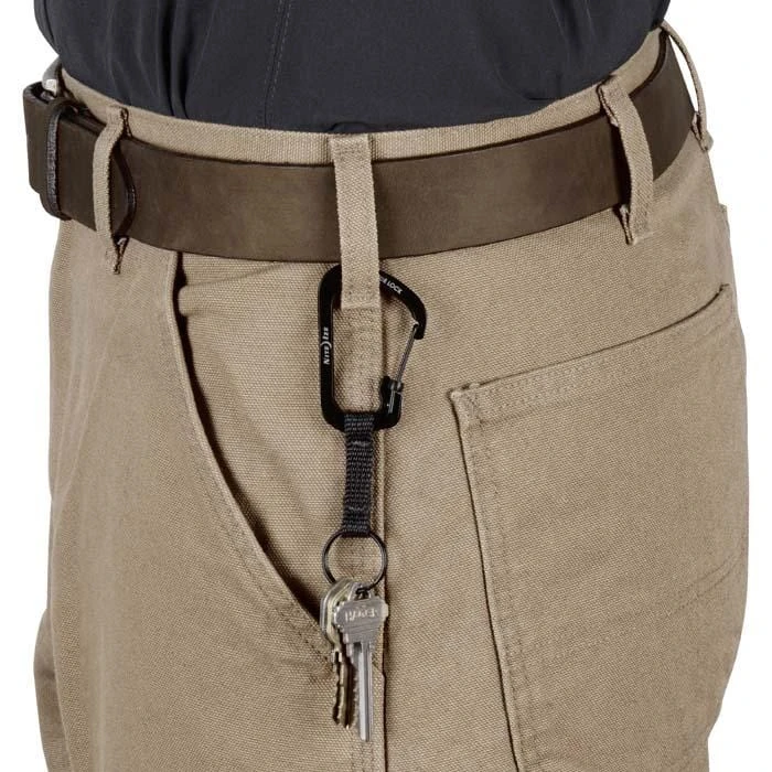 Nite Ize’s locking stainless steel carabiner and key ring are joined by a short nylon webbing strap to keep your keys separate, yet connected. The carabiner features a SlideLock mechanism that locks the gate so it can be confidently secured to a belt loop, backpack, or purse strap.