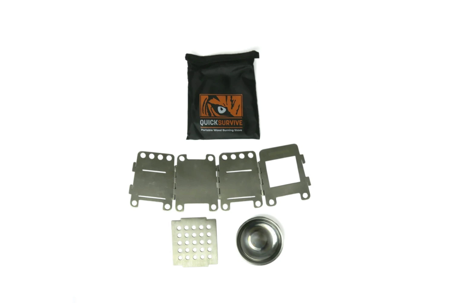 The QuickSurvive® Wood Burning Stove is lightweight(5 oz) and portable. The stove folds flat slimmer than a smartphone and is just about as tall(4 1/4 inches tall). This stove is a must have for Campers, Backpackers / Hikers, and Survivalists. The QuickSurvive Wood Burning Stove is made with high-quality stainless steel & includes a nylon velcro carry case. Made perfect for survival packs & emergency preparedness kits. The QuickSurvive camping stove has a Built-in Pan & Pot Stand, and it’s universal design is set to fit small pots and pans. The Stoves Built-in vents greatly improve the heat efficiency. This QuickSurvive Portable Wood Burning Stove is different from traditional gas stoves, as the QuickSurvive Portable Wood Burning Stove gives you an Environmental and Simple way to enjoy Cooking in the Wilderness. You can use Twigs, Leaves, Dry Grass, Pinecones, and More as original fuel from nature. Hint Hint: Our very own all-purpose waterproof fire starters are a great pair for our portable stove!