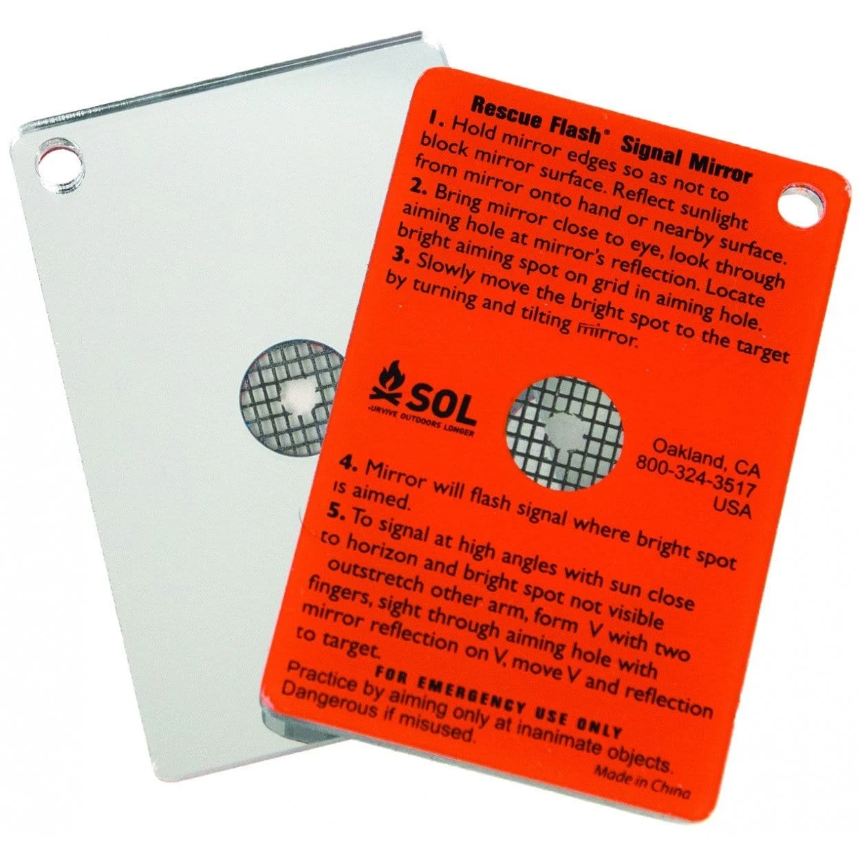 An essential in any emergency kit, the lightweight and shatterproof SOL Rescue Flash® Floating Mirror can be seen up to 10 miles away. This ultra-bright signaling tool has a reflective aimer so you can easily use it with one hand. Designed to float, feel secure using this on water and attach it to your gear or PFD through the attachment hole. The Rescue Flash® Floating Mirror is easy to pack and easy to use in an emergency.