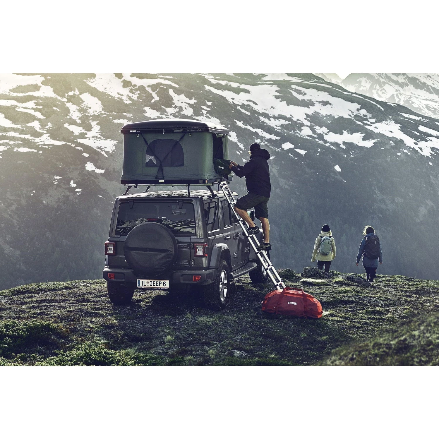 Overland with the most convient and extensive roof top tent the Thule Basin. The ultimate hybrid system that combines a rooftop tent and cargo carrier all in one. Thule Basin pops up in under a minute and the hard-shell exterior makes this rooftop tent suited for harsh weather conditions.